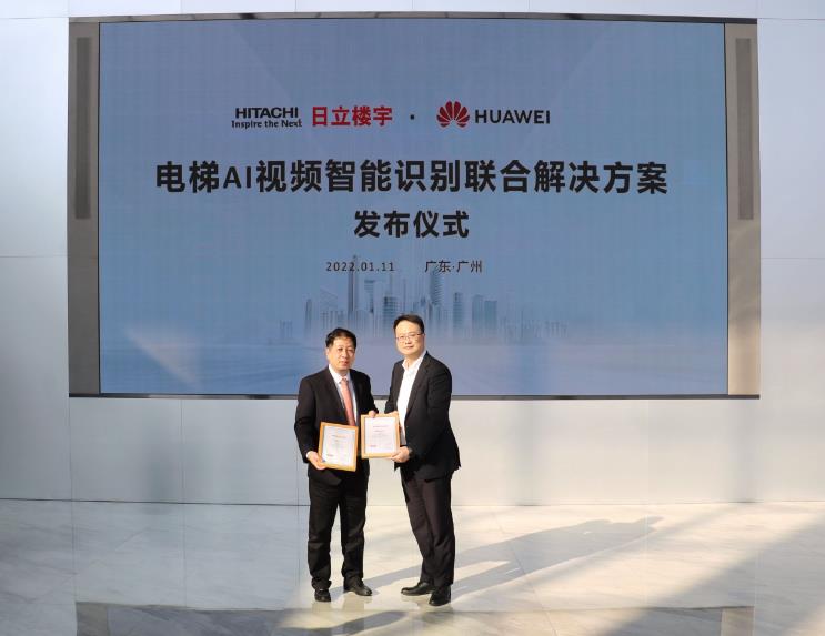 2022 年1月11日,日立楼宇与华为共同打造的“电梯AI 视频智能识别联合解决方案”正式发布。